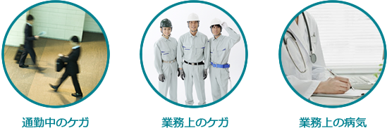 通勤中や業務中の事故・ケガは、労災保険により、優先的に補償を受けることができます。