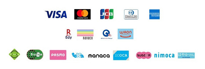 ご利用いただけるキャッシュレス決済につきましては、下記一覧をご覧ください。